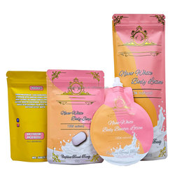 Diseño personalizado Impreso Reciclable Forma especial Stand up Spout Pouch para jabón Loción de Aceite Corporal Crema de manos Embalaje para el cuidado de la piel