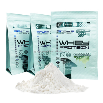 Impreso Personalizado 1kg 2Kg 5Kg Polvo de proteína de suero de leche Fondo plano Cuadrado Embalaje Alimentos Bolsa de plástico con cremallera