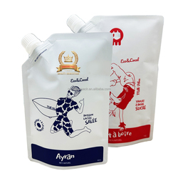 Bolsa de embalaje de pie de plástico personalizada, bolsa con boquilla para bebidas, puré, yogur, leche, jugo